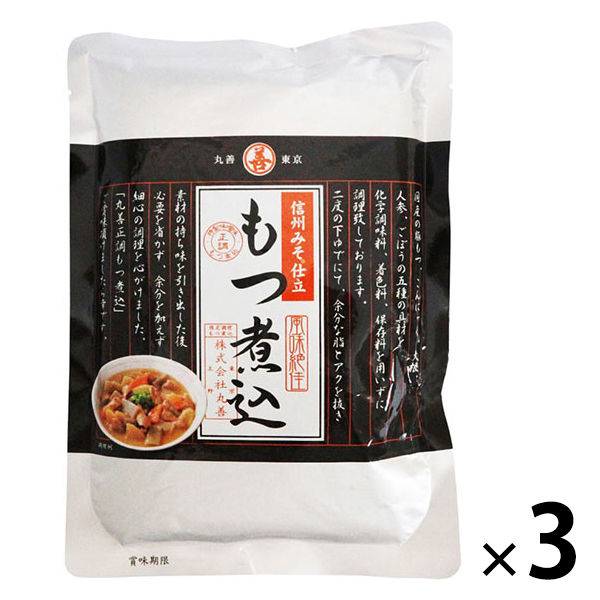 | 商品の特徴 | 国産豚もつと国産野菜を使用し、特製みそだれでじっくり煮込みました。 温めるだけですぐお召し上がりいただける、2~3人前のもつ煮込です。 保存料、化学調味料、着色料は使用しておりません。具材【豚もつ、大根、人参、ごぼう、こんにゃく】 | ||