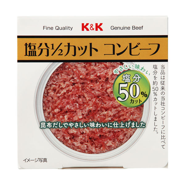 | 商品の特徴 | K&Kコンビーフの塩分を50%カットして、やさしい味わいに仕上げました。 牛脂は黒毛和牛脂を使用して舌触りもまろやかに仕上げました。 | ||
