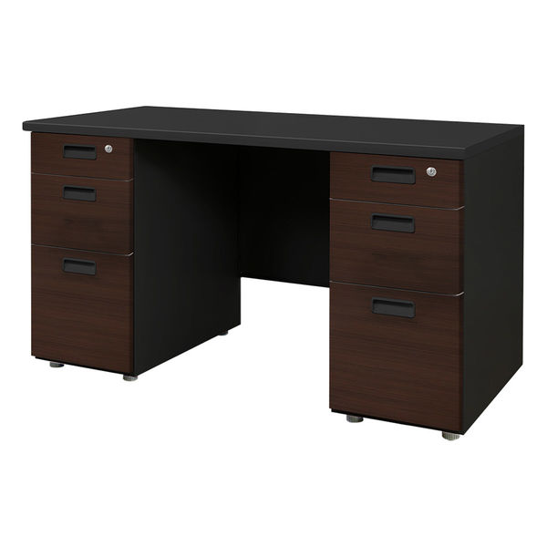 Netforce ナッツ 両袖机 3段×3段 幅1200mm ブラック×ダークブラウン LRD126BC-AW-BKDBR33 1台(直送品)