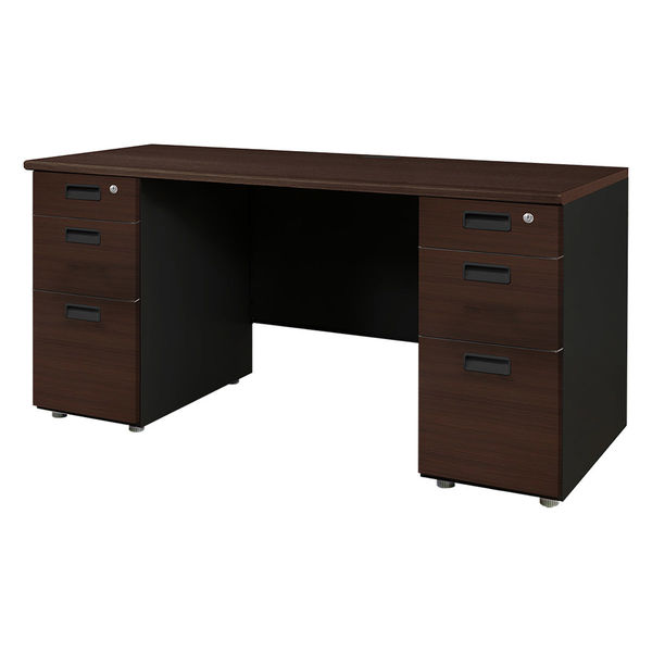 Netforce ナッツ 両袖机 3段×3段 幅1400mm ブラック×ダークブラウン LRD146BC-AW-DBRDBR33 1台(直送品)