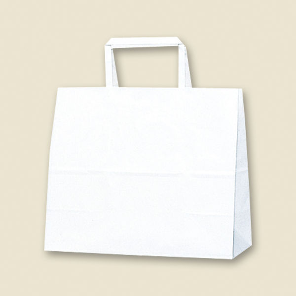 | 商品の特徴 | もっとも汎用性の高い、プレーンな白無地の手提げ袋です。マチが狭い横型の規格で、雑貨小物・菓子などオールマイティです。未使用時には紐が飛び出ていないため、在庫スペースにやさしい平紐タイプです。●手紐:平紐白●入数:50枚 | ||