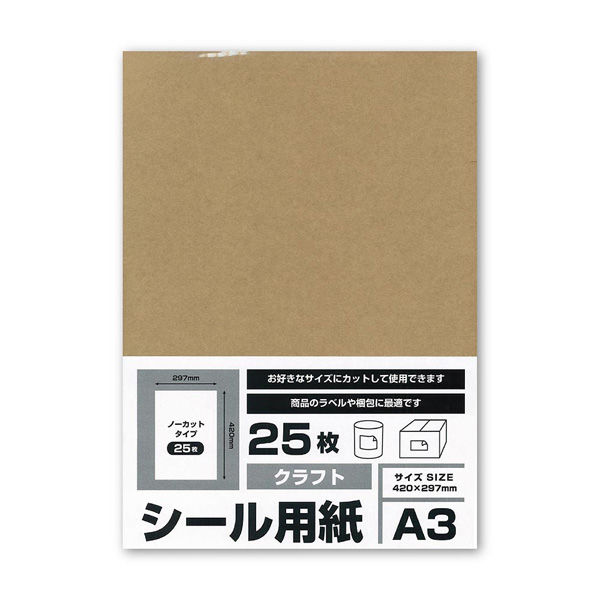 | 商品の特徴 | 商品ラベルや梱包の表示ラベル作成に便利なクラフトシール用紙。好きなサイズに切って使えるノーカットタイプ。 | ||