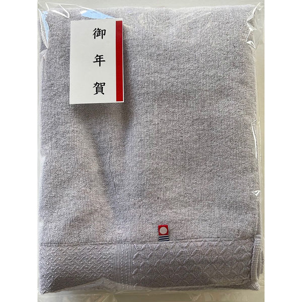 バスタオルが袋に入れられており、袋には「御年賀」のシールを貼っています。