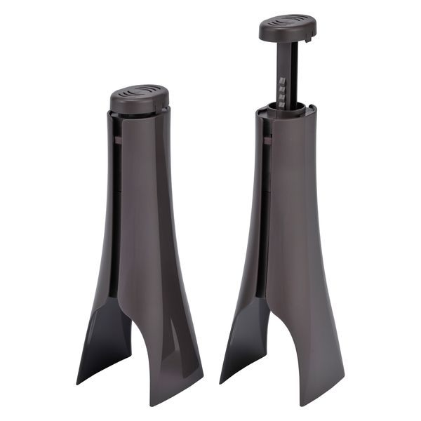| 商品の特徴 | 【2個入り_ブーツホルダー】ミドルサイズからロングサイズまで、あらゆるブーツに対応する伸縮機能付きブーツホルダー。ブーツを本体にセットして交互に組み合わせれば、ブーツ1足を片足分のスペースで収納。ブーツのコンディションを整えながら、2倍の収納量を実現するブーツ収納のベストソリューション。脱臭剤を入れられるヘッドケース付き。ヤシの実から作られるヤシ殻活性炭が直接足底に当たるので、効果的に消臭できます | ||