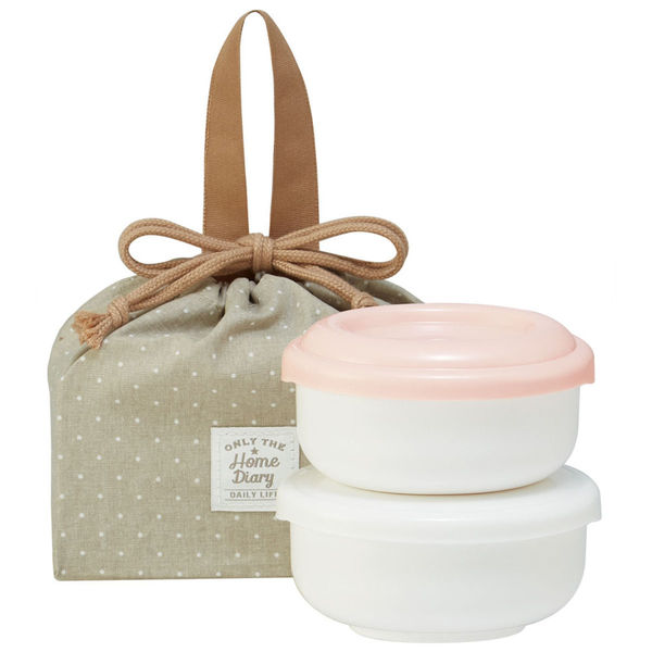 | 商品の特徴 | 巾着袋とご飯容器、おかず容器のランチセットです。 巾着袋は持ち運びに便利な持ち手付きです。 容量はそれぞれ上段が250ml、下段が280mlで、総容量は530mlです。 おかず容器には汁漏れしにくいパッキンが付いています。 容器は保存容器としても、お弁当箱としてもお使いいただけます。 蓋を外して電子レンジを使用することができます。 食洗機対応でお手入れが簡単です。 食べ終わった後は、積み重ねてコンパクトな収納が可能です。 | ||