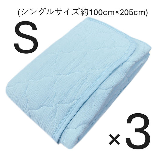 3枚 水洗い2重ガーゼ敷パット ブルー 100×205cm シングル 4582243778589‐BL‐3 1セット(3枚入)(直送品)