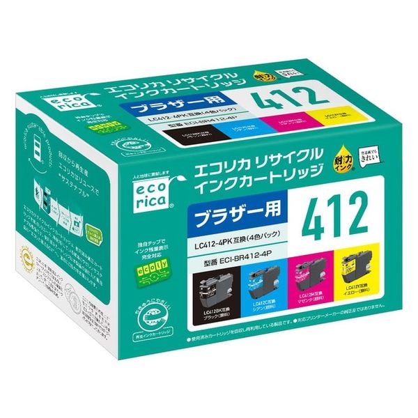 エコリカ ブラザー(brother)用 リサイクルインク ECI-BR412-4P 4色 LC412-4PK対応 1箱(4色入)