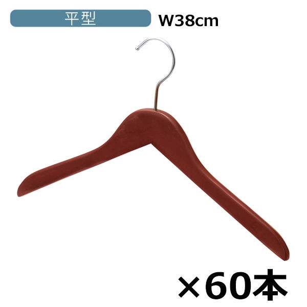 【軒先渡し】ストア・エキスプレス 木製ハンガー ブラウン 平型(メープル) 平型幅38cm 6700-6384 1セット(60本入)(直送品)