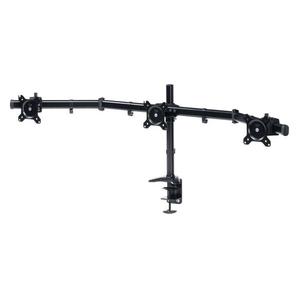 | 商品の特徴 | ●3台のモニターを横並びに設置できるモニターアームです。 ●VESA規格(75×75mm、100×100mm)に準拠した液晶ディスプレイの取り付けが可能です。 ●最大8kg(モニター1台あたり)までの液晶モニターの取り付けに対応しています。 ●デスクの天板へ取り付け可能なクランプタイプです。 ●ディスプレイからのケーブルをすっきり配線できるケーブルクリップ付きです。 | ||