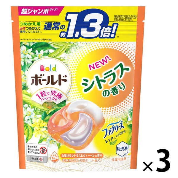 ボールド ジェルボール4D シトラス&ヴァーベナ 詰め替え 超ジャンボ 1セット(14粒入×3個) 洗濯洗剤 P&G【旧品】