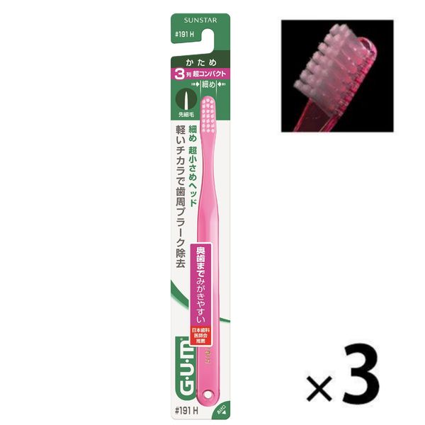 ガム デンタルブラシ #191 先細毛 3列超コンパクト かため 1セット(3本) サンスター GUM 歯ブラシ