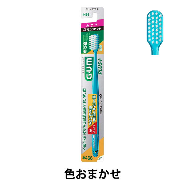 ガム ウェルプラス デンタルブラシ#466 4列コンパクト ふつうサンスター GUM 歯ブラシ歯周プラーク除去