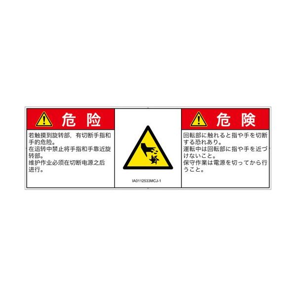| 表示内容 | 機械的な危険:切断(回転部)IA0112533危険簡体字:日本語(マルチランゲージ) | ||