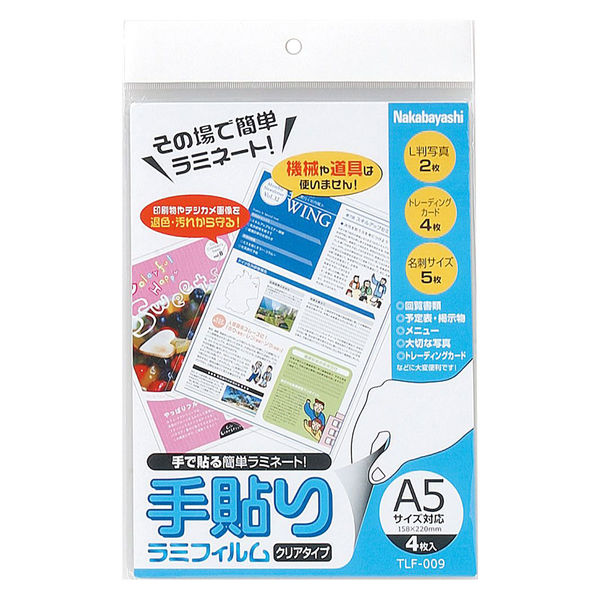 ナカバヤシ 手貼りラミフィルム A5サイズ 4枚 TLF-009 1冊