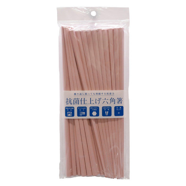 つかみやすい六角の丈夫なお箸です!つまみやすく先角になっており、滑り止め加工もしてあります。 食洗器対応で抗菌仕上げになっており、家族用でも業務用でも!