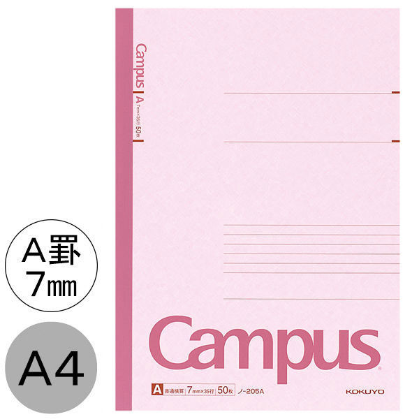 コクヨ キャンパスノート A4 A罫7mm(ミリ) 50枚 1冊 ノ-205A(わけあり品)