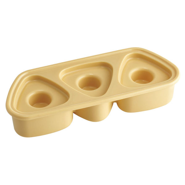 | 商品の特徴 | くぼみ付きのおにぎり押し型です。 食べやすいサイズを1度に3個作れます。 ご飯がくっつきにくい表面加工が施されています。 食洗器対応です。 蓋を外したら電子レンジの使用可能です。 | ||
