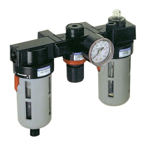 | 商品特徴 | ●空気圧機器をトラブルから守るために各種フィルタ、空気の清浄化と調圧による力のコントロールを実現。●フィルタ・レギュレータ・ルブリケータの3点セットのほか、新しいコンビネーションのご提案 | 圧力計 | 標準圧力計付(1MPa) |