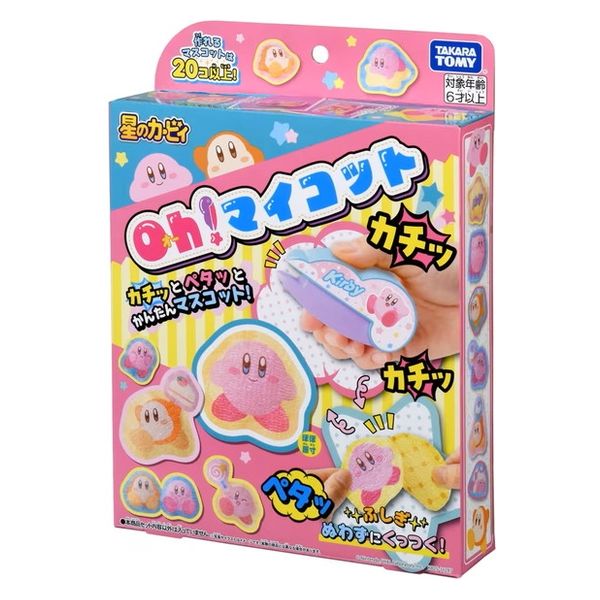 | 商品の特徴 | カチッとペタッとかんたんマスコット!カチカチすると…布と布がくっついた!?あっという間に星のカービィのマスコットが完成!作れるマスコットは20コ以上!あそびかたいーっぱい! | ||