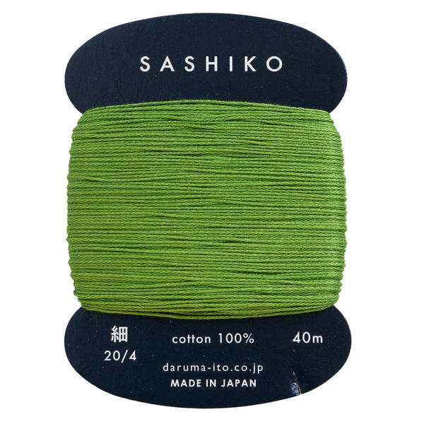 商品の特徴 一般的な太さの刺し子糸。大きい柄から細かい柄まで幅広くお使いいただけます。カード巻の糸の為、糸に巻跡がつきますが、手で軽くほぐしていただくと次第になじんでいきます。