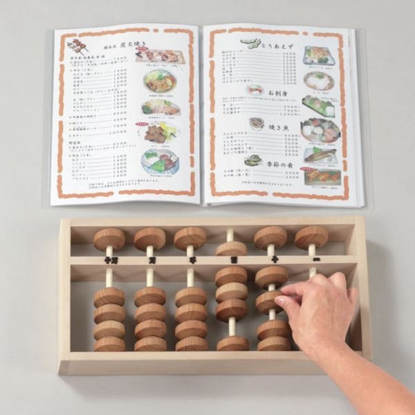 | 商品の特徴 | 直径45mmの大玉そろばんです。昔懐かしいそろばんを付属のメニューブックを見ながら計算します。メニューの中味は居酒屋、食堂などのおいしそうな食べ物や飲み物になっていますので、好きな物を選びながら合計いくらになるか?指先でそろばんをはじき、計算する。●寸法:そろばん=幅410×奥行220×高さ45mm、そろばんの玉=直径45mm●材質:そろばん=木、メニューブック=紙 | ||