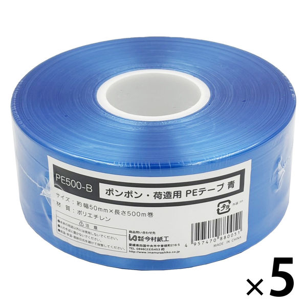 本商品:今村紙工 ポンポン PEテープ 青 PE500-B 1セット(1巻×5) |