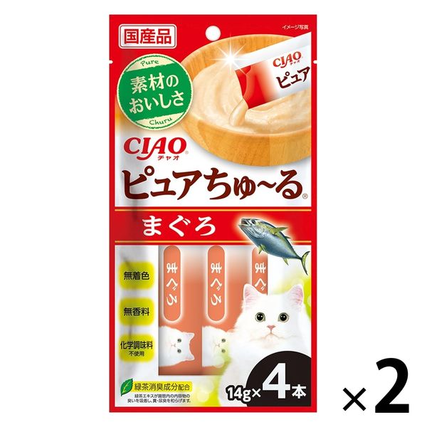 いなば CIAO チャオ ピュアちゅーる 猫 まぐろ 国産(14g×4本)2袋 ちゅ~る キャットフード ウェット 猫用 おやつ