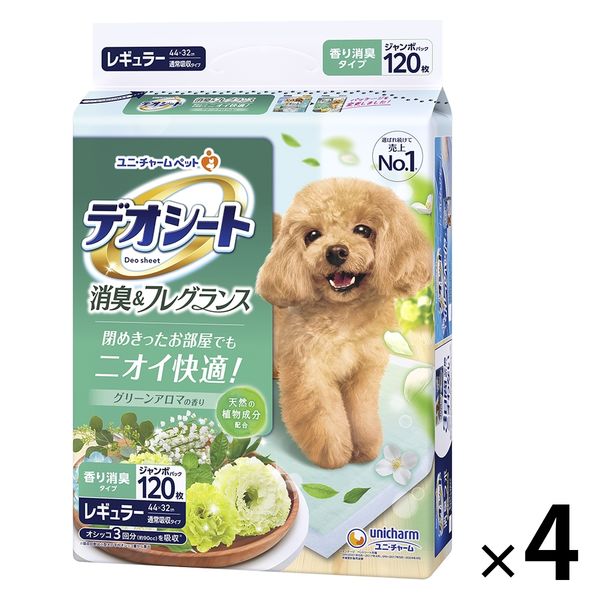 ペットシーツ デオシート 消臭&フレグランス グリーンアロマの香り レギュラー ジャンボパック 120枚 4袋 ユニ・チャーム