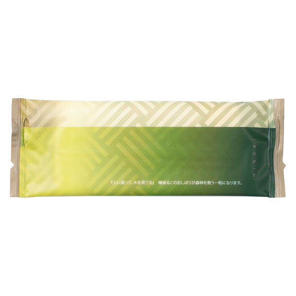 国産ひのき精油成分を配合した高級感のある平型大判サイズのおしぼり。優しくすっきりとした香りはリラックス効果も高く、満足度の高い紙おしぼりです。