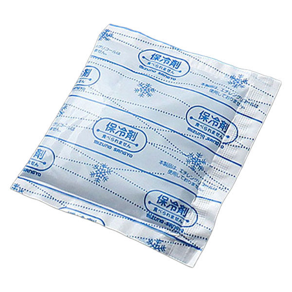 | 商品の特徴 | テイクアウトの商品に使用できる、汎用サイズの保冷剤です。持ち帰り用のケーキ箱に自然に収まるサイズになっています。誤飲防止のための注意書も記載されています。 | ||