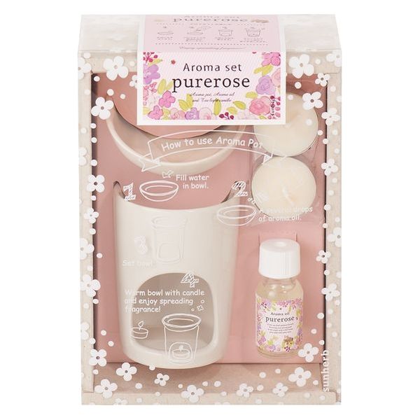 | 商品の特徴 | ポットでアロマオイルを温めて、ふんわり広がる香りを楽しむセットです。ティーライトキャンドルも入ってます。うっとり幸せ気分、ピュアローズの香り | ||