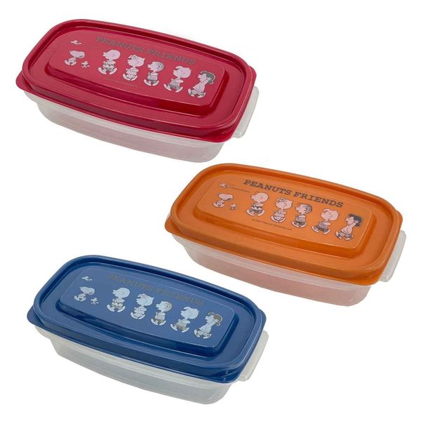 | 商品の特徴 | スヌーピーのイラスト入りフタがかわいい保存容器です。 使い分けに便利な3個入りです。 作りおきのおかずや残り物の保存に程よいサイズです。 スリムな形状で冷蔵庫にもスッキリ収納できます。 使わない時は重ねてコンパクトに収納できます。 フタの四隅にはつまみが付いているのでどの方向からでも開けやすい仕様です。 容器本体には持ち手が付いているので、レンジや冷蔵庫からも取り出しやすくなっています。 フタを外せば電子レンジの使用が可能です。 ランチボックスとしてもお使いいただけます。 | ||