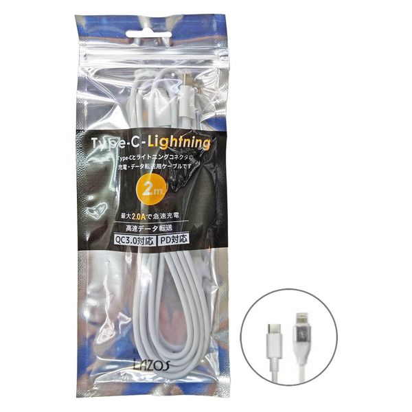 | 商品の特徴 | Type-Cとライトニングコネクタ用の充電/データ転送用ケーブル●特長・QC3.0とPDに対応・充電とデータ転送に対応 ※非認証最大出力:9V/2A(PD18W)、QuickCharge3.0対応・最大2.0Aで急速充電可能●仕様・コネクタ形状:TypeCオス-Lightningオス・色:白・ケーブル長:2m | ||