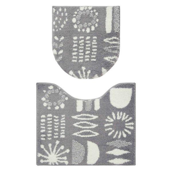 | 商品の特徴 | やさしい色合いの北欧風デザインが可愛い、トイレマット・兼用蓋カバーの2点セットです。 蓋カバーは裏面に縫製された粘着シートにより、U・O型/洗浄・暖房タイプ、どの型にも対応できます。 ふわふわと柔らかくやさしい肌ざわりの糸(ポリエステル100%)を使用しています。 マットの裏面には滑り止め加工済みで、ズレを防ぎます。 | ||