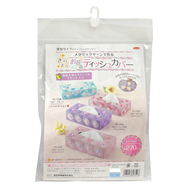 タカギ繊維 Panami 手芸キット メタリックヤーン きらきら お花の ティッシュカバー ルビーブルー TC108 1袋