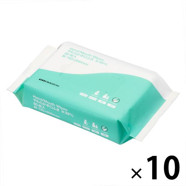 アスクルやわらか手口ふき からだふき ウェットタオル 手口ふき用ウェットティッシュ 1セット(80枚入×10パック) オリジナル
