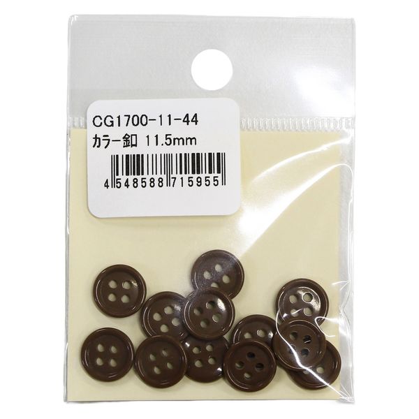 日本紐釦貿易(Nippon Chuko) カラーボタン 11.5mm 12個 焦げ茶 CG1700-11-44 1セット(3袋)(直送品)
