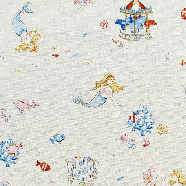 日本紐釦貿易(Nippon Chuko) 人魚姫 リストストーリーシリーズ プリント生地 シーチング キナリ 巾約108cm×1mカット C(直送品)
