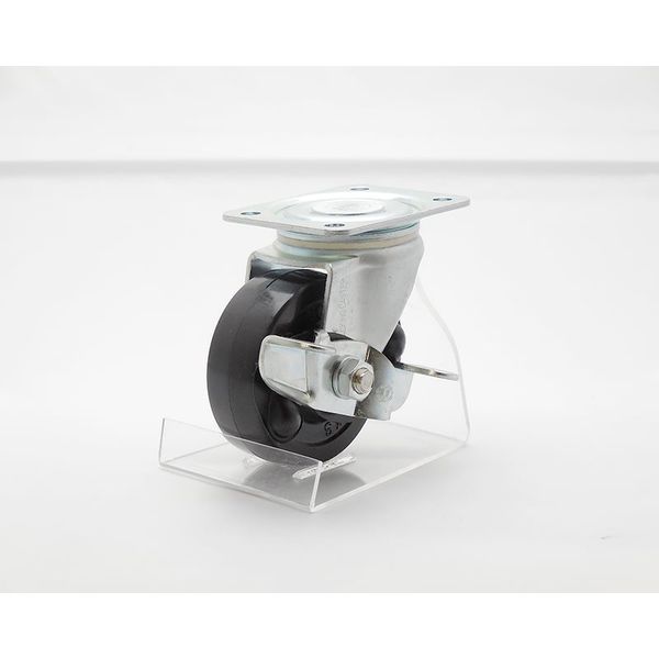 | 車輪径(mm) | 63/車輪巾(mm):23/旋回半径(mm):72/偏心距離(mm):25/車輪取付高(mm):80/座金寸法(mm):54X70/取付穴ピッチ(mm):36X54/取付穴径(mm):6.5/取付座厚(mm):2.3/許容荷重(kg):70 | 車輪材質 | NBR(合成ゴム) |