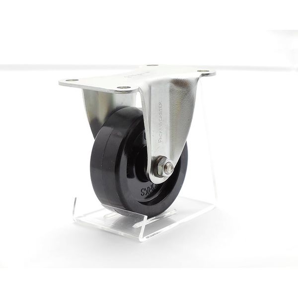 | 車輪径(mm) | 75/車輪巾(mm):27/車輪取付高(mm):98/取付板巾(mm):64/取付板長(mm):98/取付穴ピッチ(mm):46X80/取付穴径(mm):8.5/取付座厚(mm):2.6/許容荷重(kg):180 | 車輪材質 | フェノール |