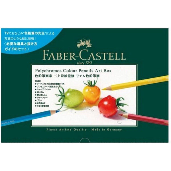 | 商品の特徴 | TV番組で“色鉛筆の先生”として写真と見紛うお手本でおなじみの三上詩絵さん監修のリアル色鉛筆画セット。 三上さんセレクトの14色のポリクロモス色鉛筆に独自メソッドの描き方ガイド、紙、練習シート、道具類が全て揃っている初~中級者向けセット。 サイズ:290x190x30.5mm | ||