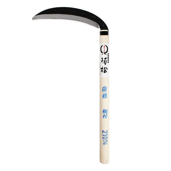 - 鋭利な刃物です。取扱いには十分注意してください。草を切るための刃物です。用途以外には使用しないでください。使用前には柄のぐらつき、部品に傷が無いか点検し、安全を確かめてご使用ください。使用後は子供の手の届かない所に保管してください。