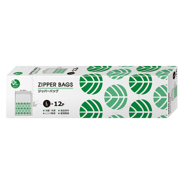 プラスプラス デザインジッパーバッグ L 26×35cm 葉っぱ柄 保存袋 冷凍・レンジ解凍可 1箱(12枚入)オルディ