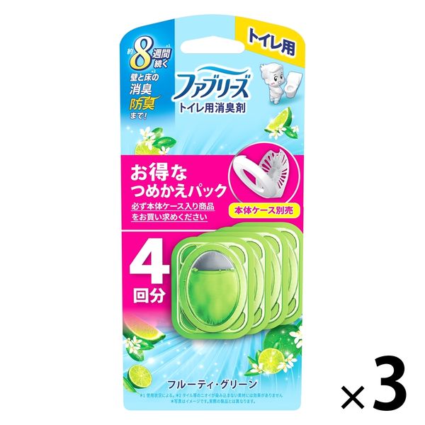 ファブリーズ 消臭芳香剤 トイレ用 フルーティグリーンの香り 詰め替え 1セット(1パック(4個入)×3) P&G