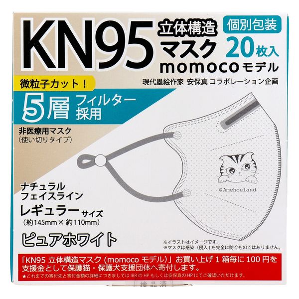 KN95 立体マスクmomocoモデル 個別包装レギュラーピュアホワイト 20枚 4573508630384 1箱(20枚入)(直送品)