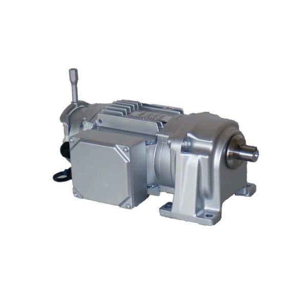 - ●特徴●トップランナー基準対応ギヤードモータ メーカー従来ギヤードモータと取付寸法同一により 置き換えが可能。※1.5kW1/3~1/10は除く●インバータ運転 インバータによる可変速運転が可能。周波数が小さくなってもトルク値が下がることなく、出力100%の定トルク運転ができます。●ブレーキ手動解放装置付 設置作業や停電時等の復旧作業がスピードアップできます。●異電圧モータ 400Vの高電圧にも対応。 (0.1kW~0.4kWは380~415/380~460V) (0.75kW~7.5kWは400/400~440V) ※異電圧モータは、熱帯処理済みです。