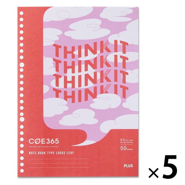 【アウトレット】【Goエシカル】訳あり プラス ノート型ルーズリーフ COE365 セミB5 ドット入罫線 50枚 赤×ピンク 1セット(5冊)