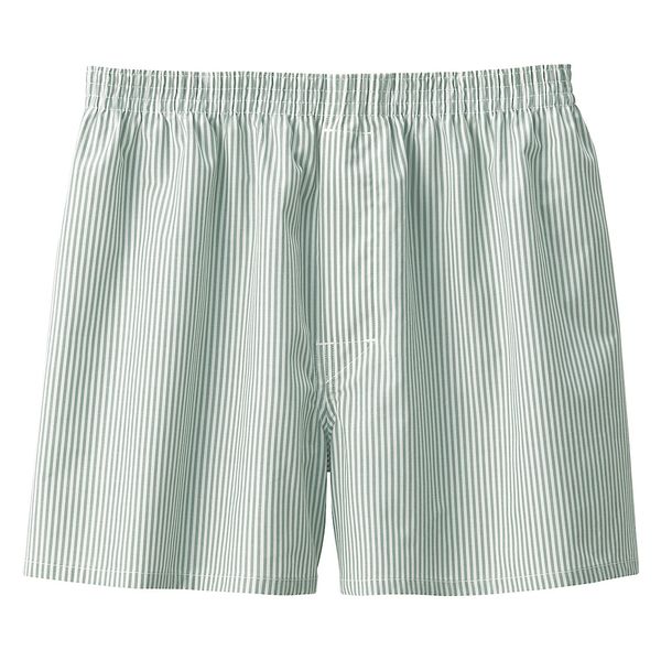 【メンズ】無印良品 紳士 綿ブロード 前開き トランクス 紳士M グリーンストライプ 良品計画