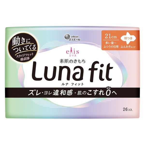 【生理用品】 ナプキン 多い昼~ふつうの日用 羽つき 21cm エリス素肌のきもちルナフィット 1個(26枚入) 大王製紙