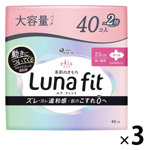 【生理用品】 大容量 ナプキン 多い昼用 羽つき 23cm エリス 素肌のきもちルナフィット 1セット(40枚×3) 大王製紙